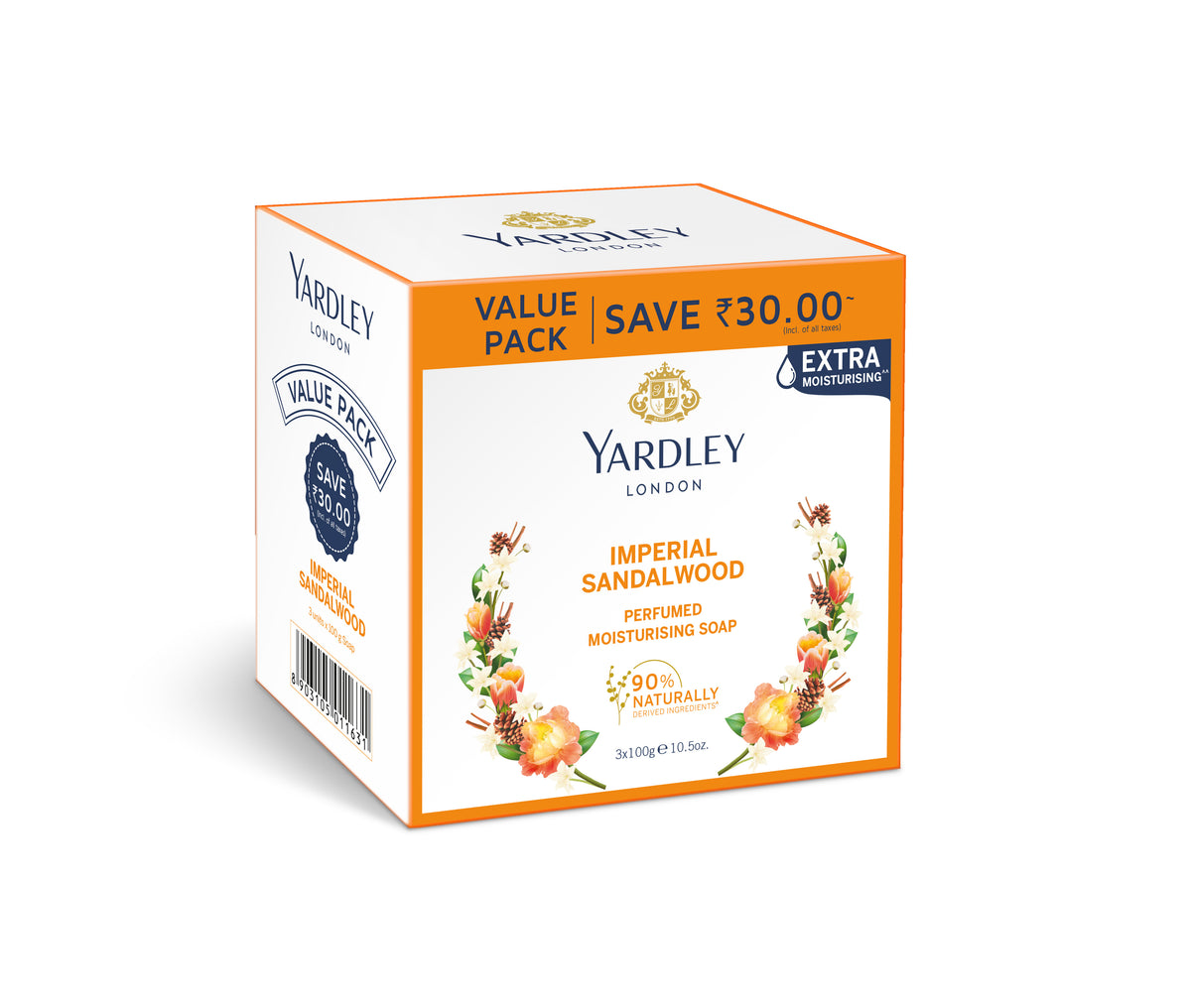Lose yourself in the rich, earthy scent of sandalwood with the Imperial Sandalwood Luxury Perfumed Soap from Yardley. The musky sandalwood fuses with the light, gentle scent of jasmine to give you a rich, creamy, long-lasting bathing experience. Indulge yourself and enjoy. Country of Origin : India