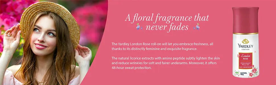 The Yardley London Rose roll-on will let you embrace freshness, all thanks to its distinctly feminine and exquisite fragrance. The natural licorice extracts with amino peptide subtly lighten the skin and reduce wrinkles for soft and fairer underarms. Moreover, it offers 48-hour sweat protection.