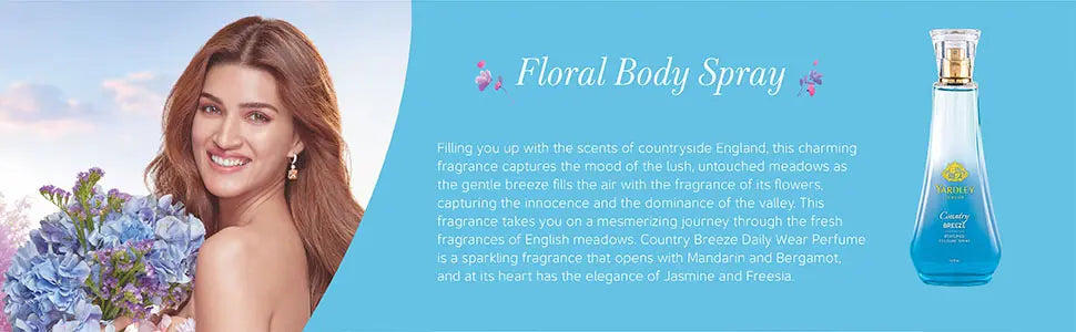 Filling you up with the scents of countryside England, this charming fragrance captures the mood of the lush, untouched meadows as the gentle breeze fills the air with the fragrance of its flowers, capturing the innocence and the dominance of the valley. This fragrance takes you on a mesmerizing journey through the fresh fragrances of English meadows. Country Breeze Daily Wear Perfume is a sparkling fragrance that opens with Mandarin and Bergamot, and at its heart has the elegance of Jasmine and Freesia